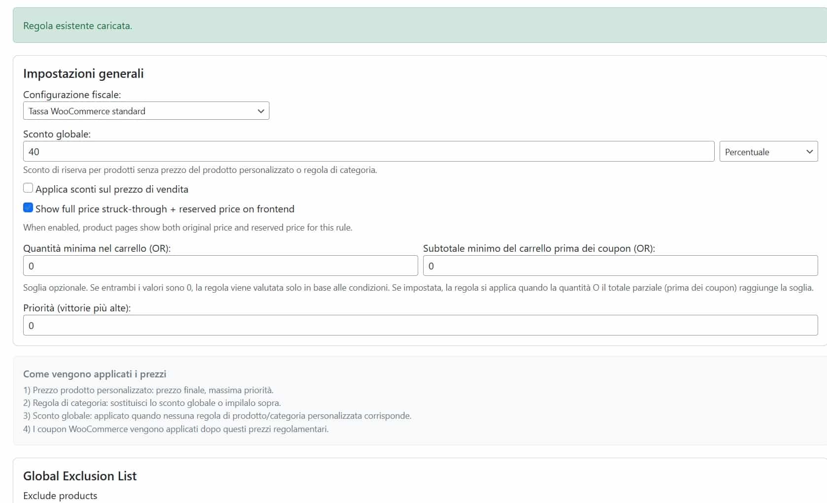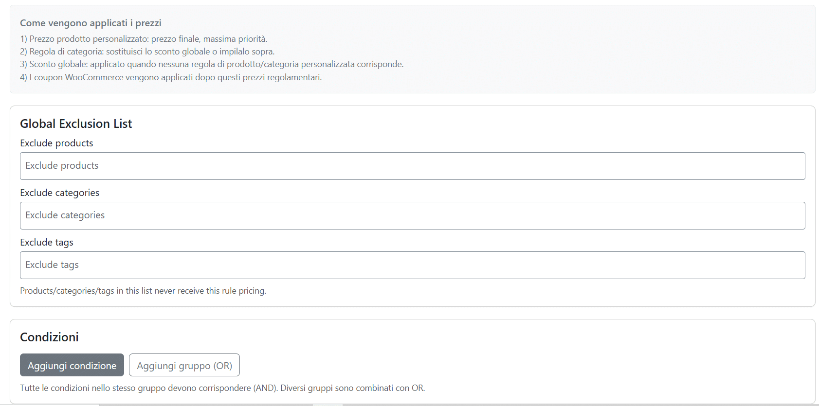 🚫 Exclusion list Escludi prodotti, categorie e tag da regole prezzo.
